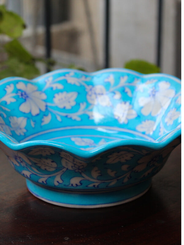 Blue Pottery Turquoise Floral Bowl – 8 Inch Handmade is beautiful and elegant made with love. Unique in design and handcrafted with love.