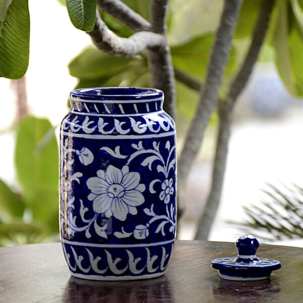 Blue Pottery Multicolour Floral Handmade Sugar/ Masala jar