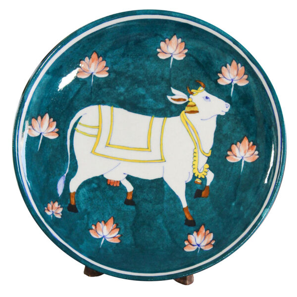 Blue Pottery Handmade Kamdhenu Cow Wall Plate is beautiful and elegant made with love. Unique in design and handcrafted with love.