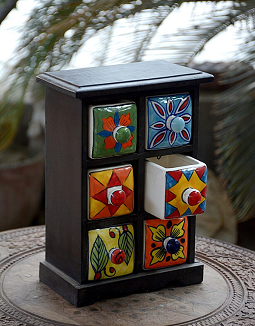 1 review for Blue Pottery Wooden Ceramic Jewellery Box- 6 Racks