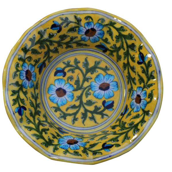 Blue Pottery Yellow Floral Bowl – 8 Inch Handmade is beautiful and elegant made with love. Unique in design and handcrafted with love.