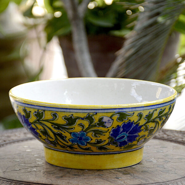 Blue Pottery Yellow Floral Bowl – 8 Inch Handmade  is beautiful and elegant made with love. Unique in design and handcrafted with love.