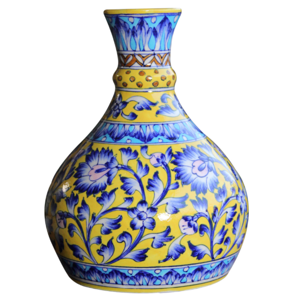 Blue Pottery Handmade Yellow Floral Pitcher Vase is beautiful and elegant made with love. Unique in design and handcrafted with love.