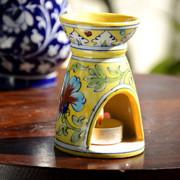 BLUE POTTERY YELLOW FLORAL SMALL OIL DIFFUSER / Aroma / Burner