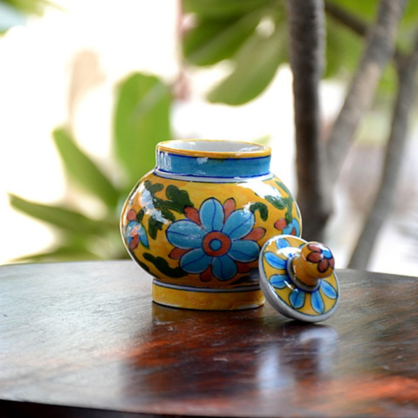 Blue Pottery Yellow Floral Sugar / Dry Fruit Pot – 3 Inch