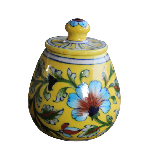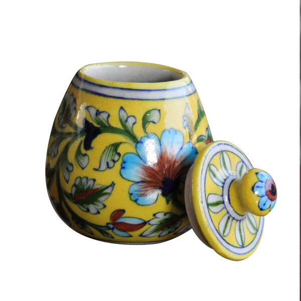 Blue Pottery Yellow Leaf Oval Sugar Pot – 3.5 Inch