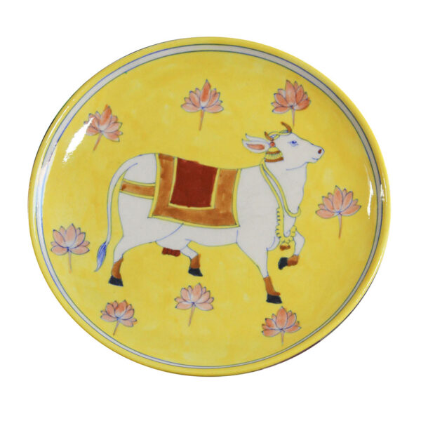 Blue Pottery Handmade Yellow Cow Wall Plate is beautiful and elegant made with love. Unique in design and handcrafted with love.